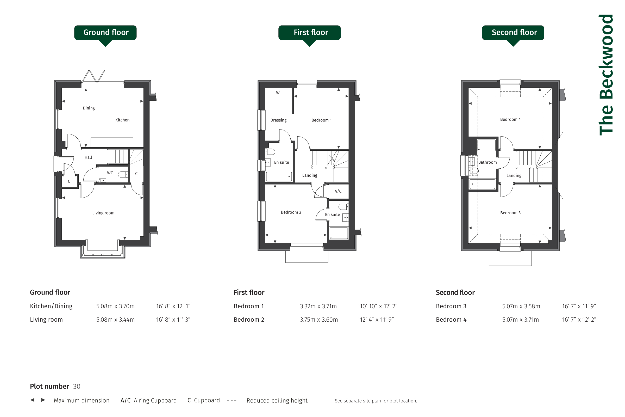 Upstairs, bedroom 1 includes a built-in wardrobe and a private ensuite, with bedroom 2 also benefitting from its own ensuite. The top-floor hosts two further large bedrooms served by a modern family bathroom, ideal for guests or growing families. With a garage, premium finishes, and energy-efficient features throughout, The Beckwood perfectly combines comfort, space, and sophistication for modern living.
