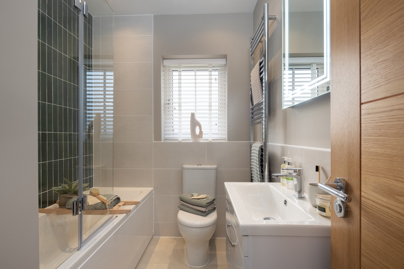 Upstairs, bedroom 1 includes a built-in wardrobe, a dressing area, and a private ensuite, while bedroom 2 also benefits from its own ensuite. The top-floor offers two generous bedrooms and a modern family bathroom, ideal for guests, children, or flexible living space. With a garage, two driveway parking spaces, and energy-efficient features throughout, The Stoneywood offers the perfect blend of comfort, quality, and contemporary style in a desirable setting.