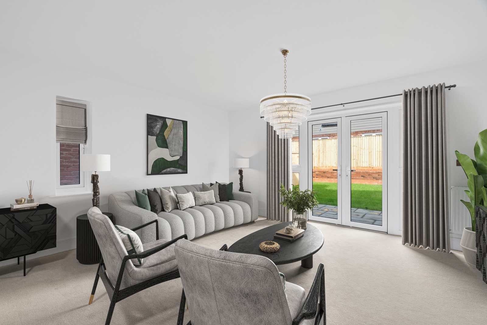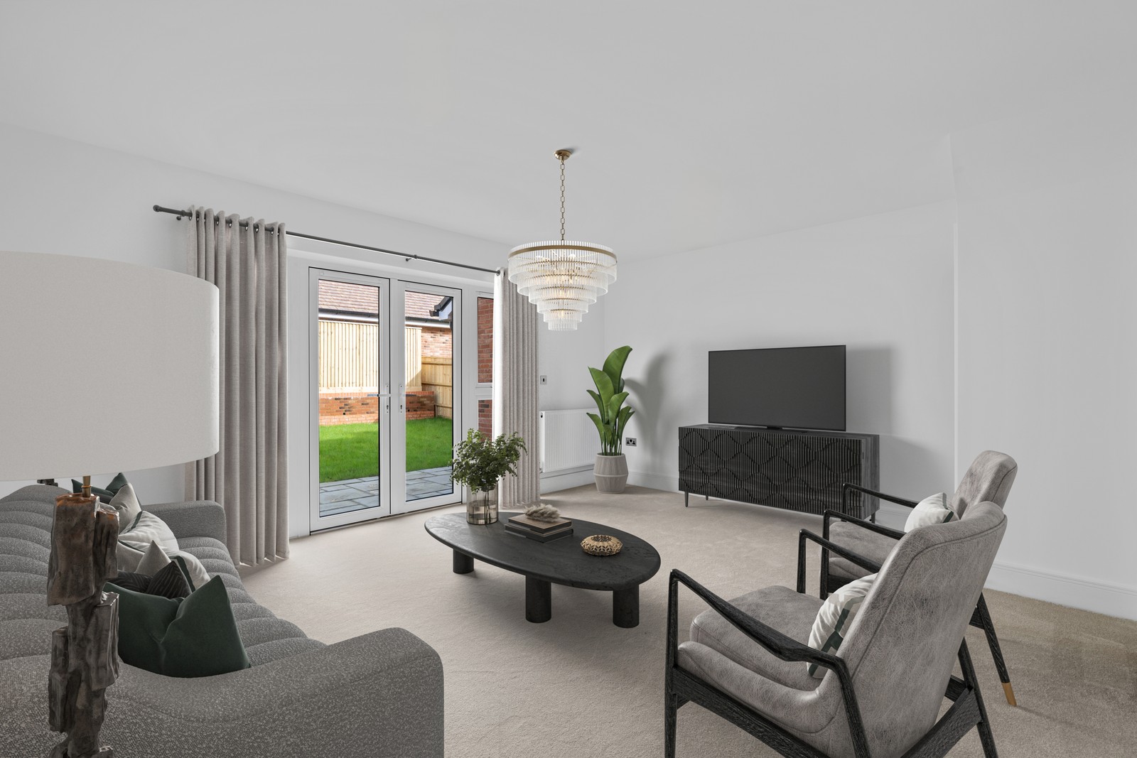 - Large living room that leads onto turfed rear garden through French doors