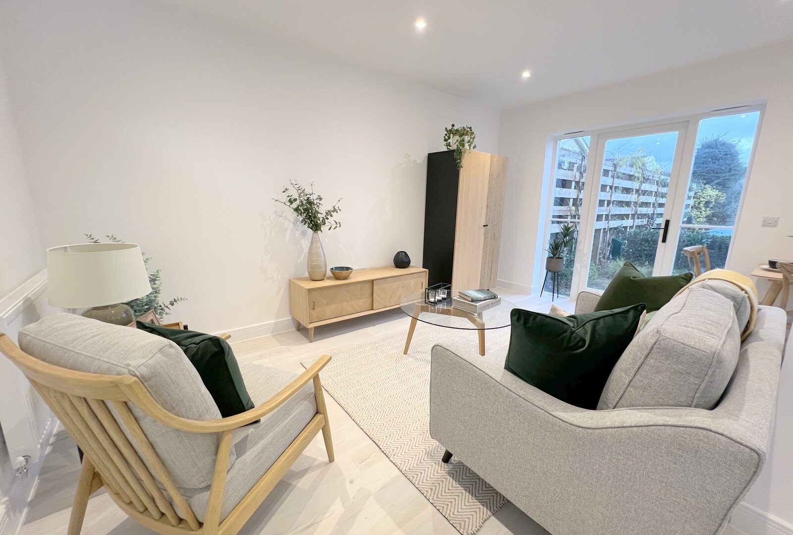 - Glazed door to either kitchen or lounge.