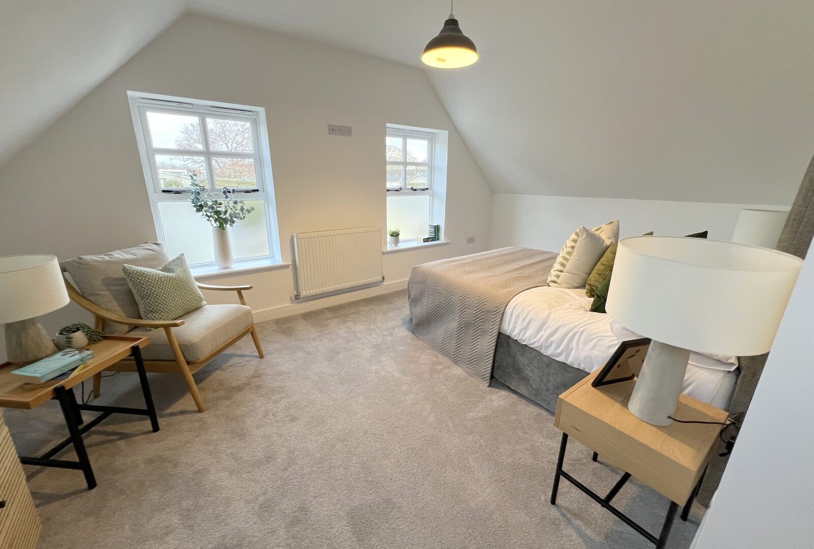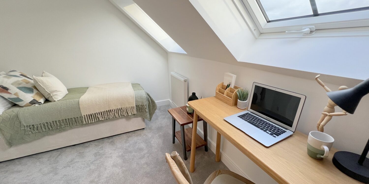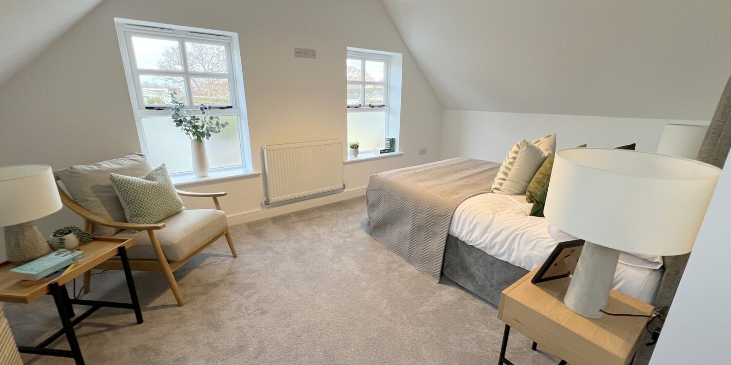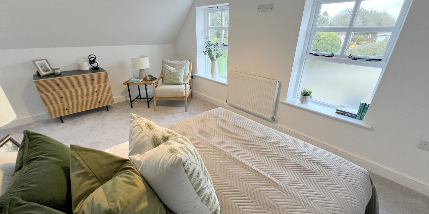 Two first floor bedrooms with the main bedroom benefitting from a double aspect view.