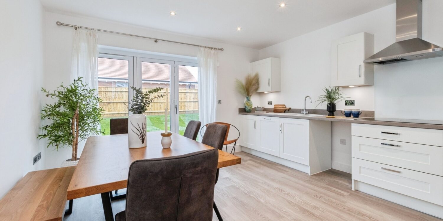 - An L-shaped kitchen with an open-plan dining area also leads onto the garden