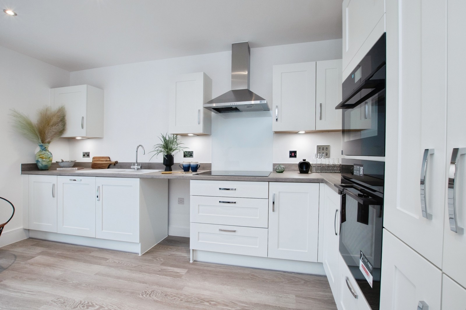 - Induction hob with chimney style extractor hood