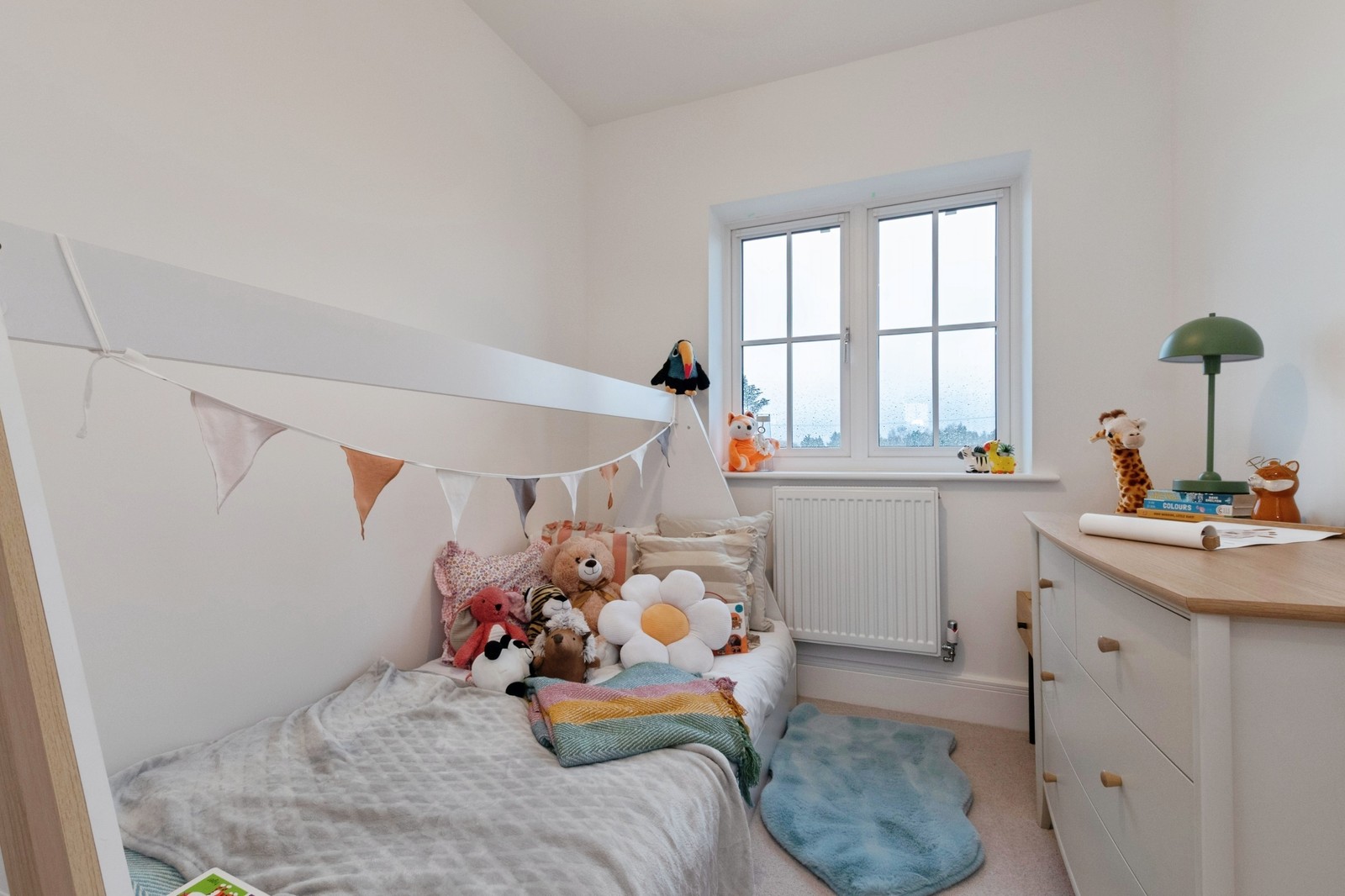 - Walls finished in matt white emulsion.