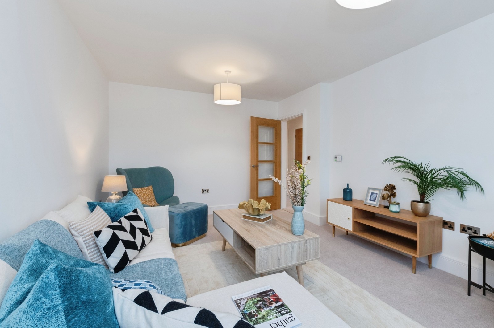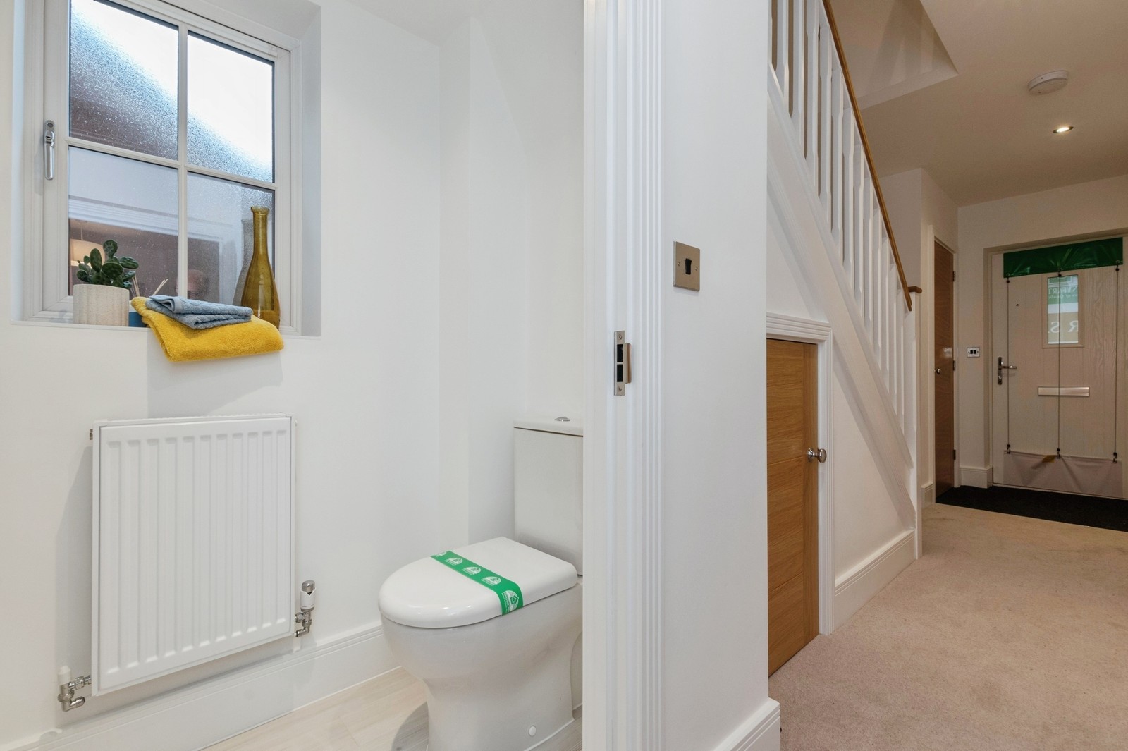 - Moulded architraves with coordinated skirting boards in a white satin finish.
