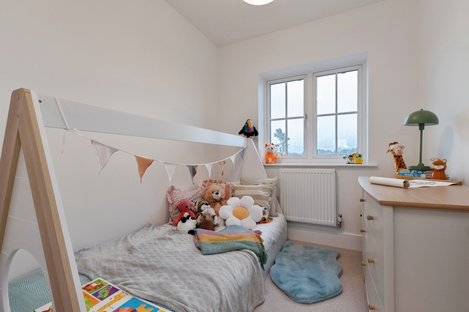 - Walls finished in matt white emulsion.